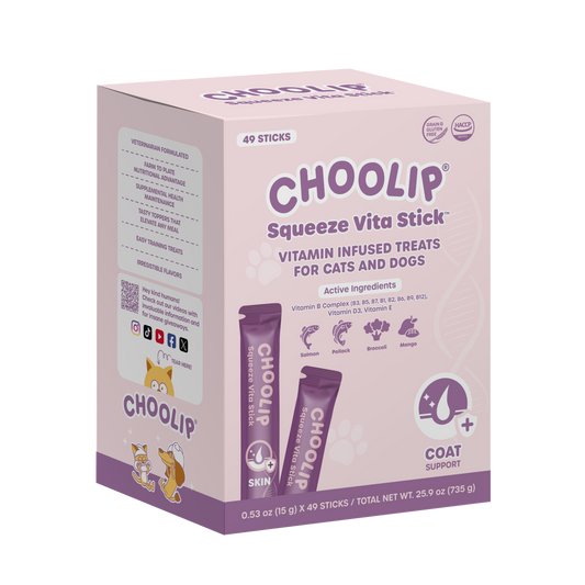 Formulated by Korean Veterinarian Dr. Eric, DVM, to support the health of his own pets. It then evolved into a convenient pet treat called Choolip Squeeze Vita Stick.