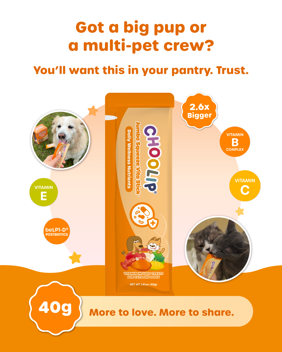 Your pet’s new wellness favorite — now in 40g Jumbo.