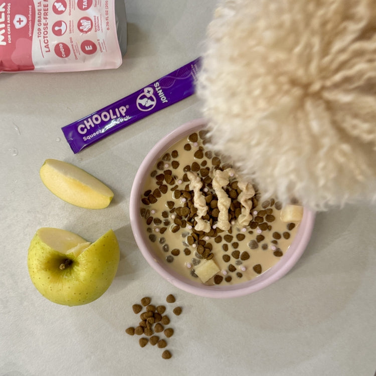 Soften Dry Kibble or Our Teekle Dental Cereal!