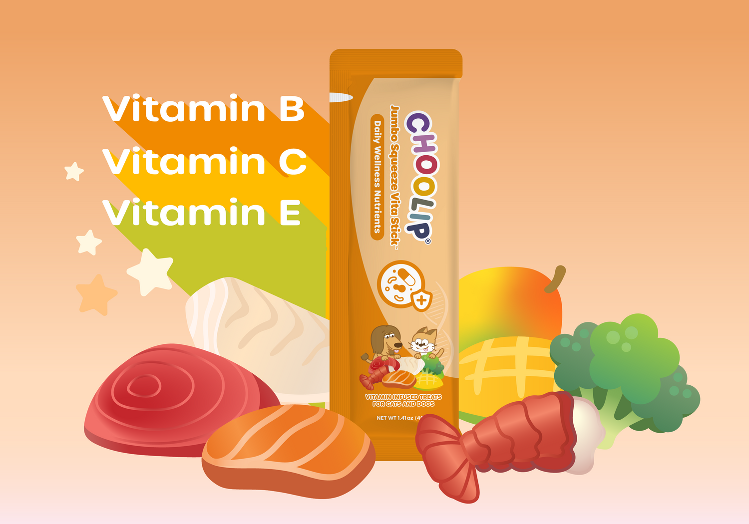 Vitamin C supports immune defense, while Vitamin E works as an antioxidant to protect cells and maintain healthy skin and coat.