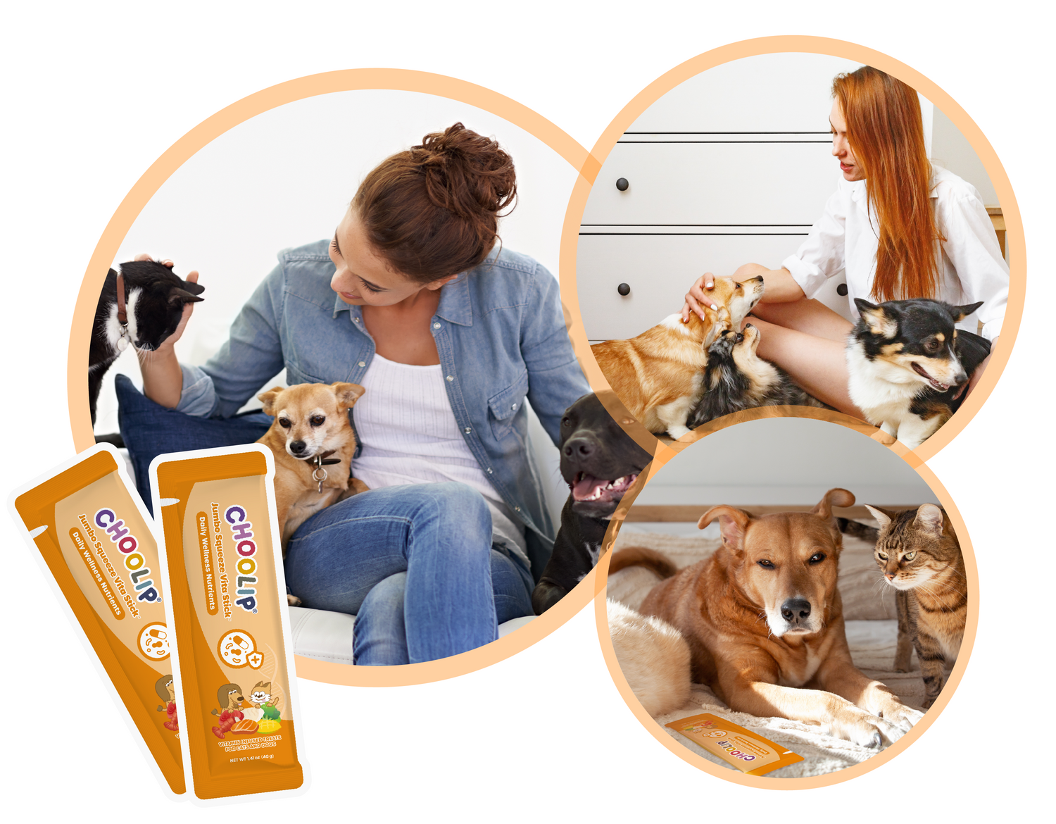 That’s a great question! There are a number of reasons. 1. TREATS: If you already feed your pet treats, then Choolip Squeeze Vita Sticks are a tastier treat, one that smells better for humans, too! 2. PRE-CARE: Vita Sticks support all round health as well as health-specific conditions. And while they can’t stop a disease or cure one, they fill in the nutritional gaps to give your pet the best pre-care. Just like humans taking supplements! 3. ELDERLY OR ILL PETS: Senior pets or sick pets can lose their sense of smell and/or their appetite and so Vita Sticks helps stimulate their appetite, while also providing a source of hydration and vitamins. 4. BEHAVIOR: You can use Vita Sticks for rewards, training, distraction or hiding medicine. 5. BONDING: There’s nothing like sharing a lickable! It’s enriching for both of you!