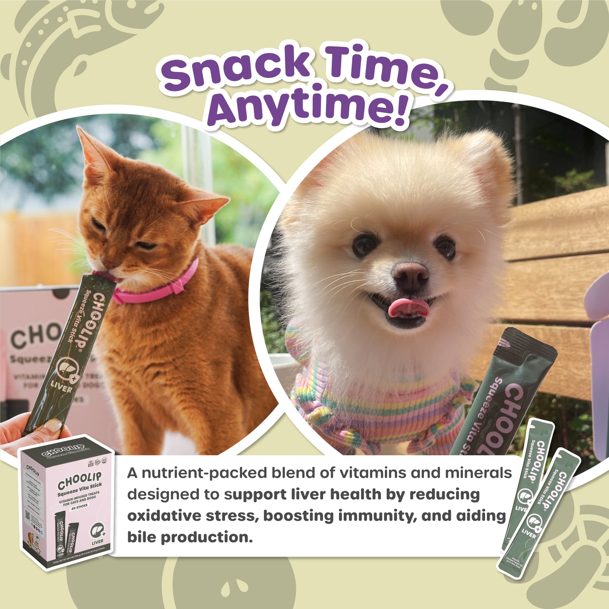 Formulated by Korean Veterinarian Dr. Eric, DVM, to support the health of his own pets. It then evolved into a convenient pet treat called Choolip Squeeze Vita Stick.
